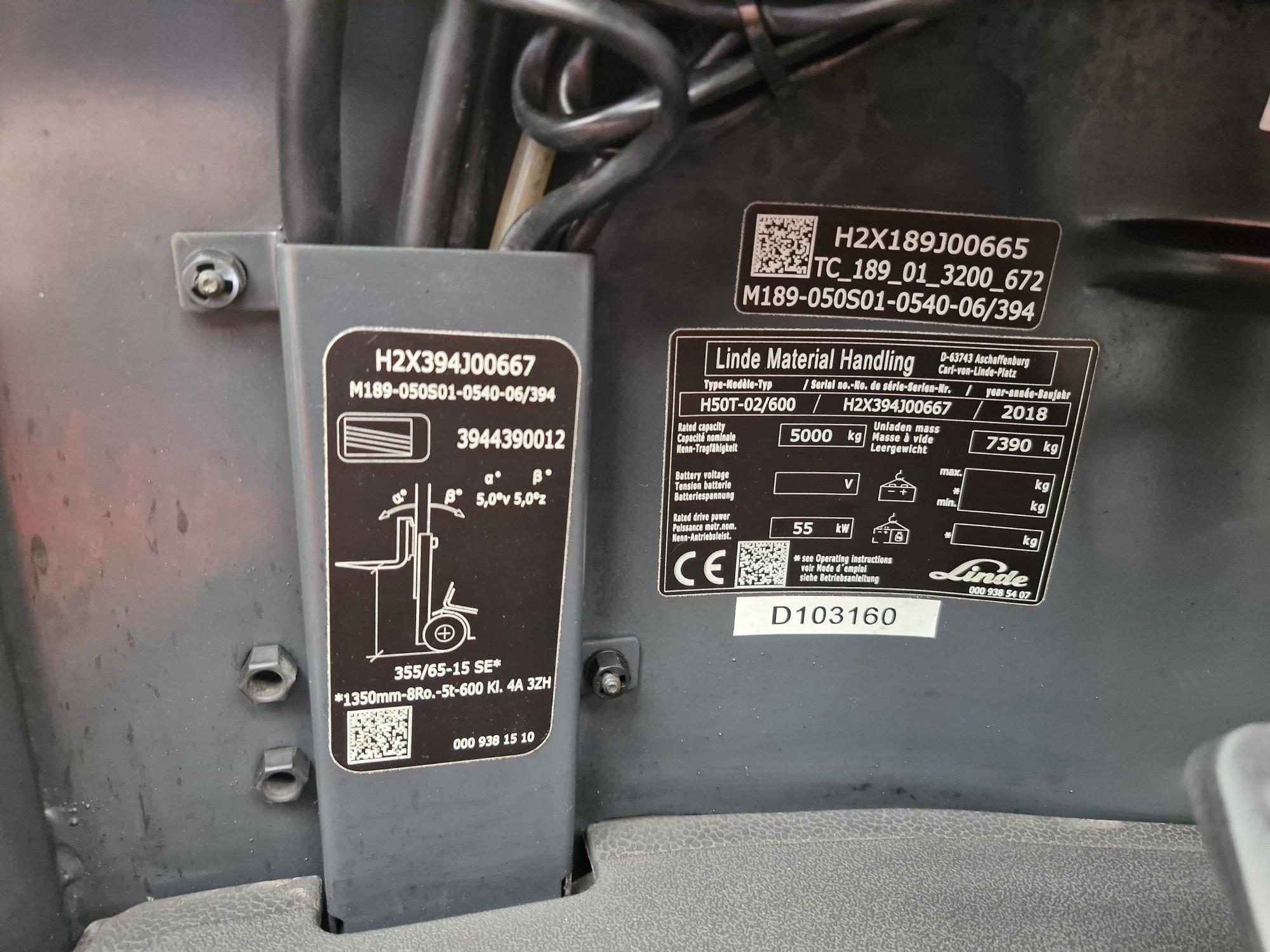 Linde H50T Forklift EVO series 2018 8,625 hours Serviced at 8,500 hours LPG - Takes 2 x bottles (bottle not included) 5,000KG Rated Capacity 5.5m Lift height Forklift is in excellent condition and is ready for work
